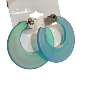 Blue Hoop Earring 1.7" Retro Bold Iridescent Y2K Festival Pierced 80's Statement
