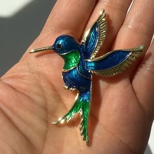 ๐ Gorgeous blue enamel hummingbird brooch with gold detailing