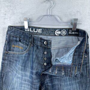 Blue Inc Mens Jeans Size W34 Straight Leg Acid Wash Button Fly Mid Rise Blue