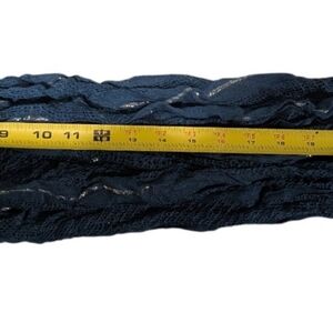 Stylish blue knit infinity scarf with a textured design. Perfect for adding a pop of color and sparkle to any outfit.