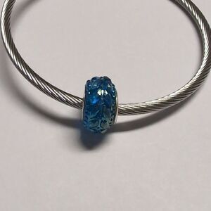 Blue Iridescent Embellished Charm for Pandora Style Bracelet