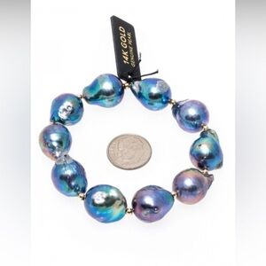 Blue Iridescent Pearl and 14K solid gold Bead Bracelet