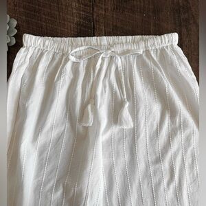Nice preowned condition with no flaws to note. 100% cotton, drawstring waist. Wide leg with eyelet/lace at bottom of legs.