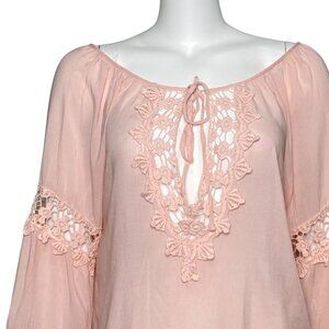 Blue Island Lace Cut Out Tunic Top Womens Size M Pink 3/4 Sleeve Popover