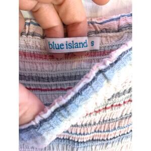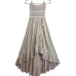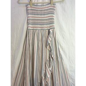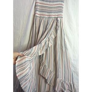 Blue Island Maxi Dress Boho Striped Ruffle, Tube Top, Flowy Skirt, Size Small