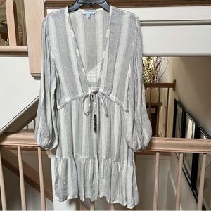 Blue Island Metallic Thread Striped Swim Cover Up in Off White-Black XS NWOT