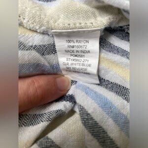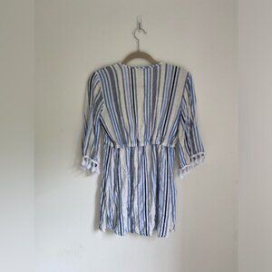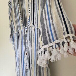 Blue Island Size XS Striped Cover-Up W/ Tassel Trim Sleeves White/Blue/Yellow