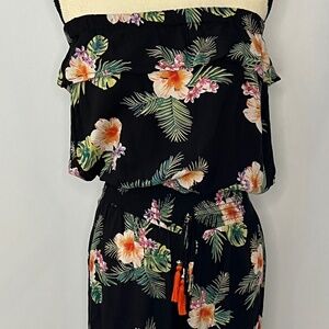 Blue Island Strapless Black/Floral Jumper (Hawaiian) Sz M