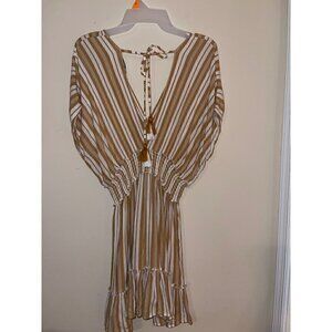 Blue Island Swim Beach Coverup Tan and White Stripe Dress Size M