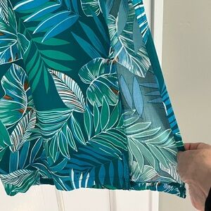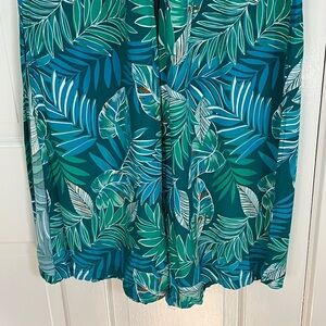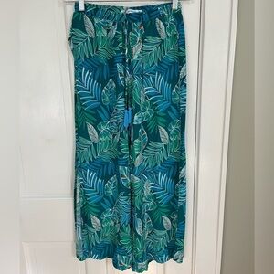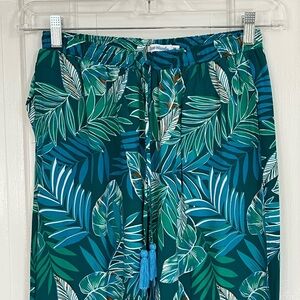 Blue Island Tropical Hawaiian Leaf Print Pull On Wide Leg Pants Beachy Size M