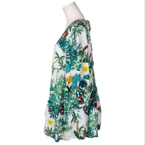 Blue Island Tropical Parrot Print Rayon Tunic Dress Boho Cover-Up M