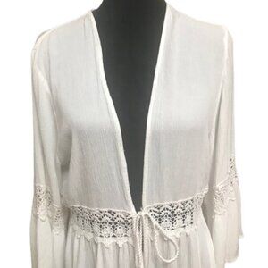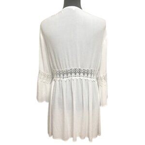 Blue Island Women's Crochet Trim White Swim Cover Up w/ Bell Sleeves Size Medium