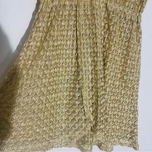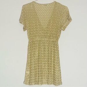 Elegant gold knit wrap dress. Features a flattering V-neckline. Perfect for any occasion.Great condition. No flaws.