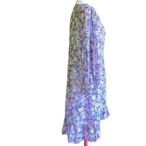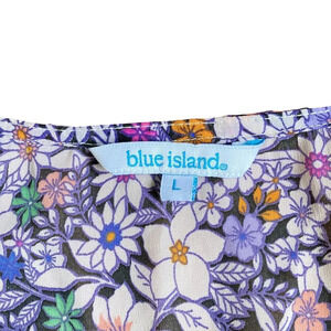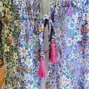 Blue Island Women's Kimono Beach Cover-up, Size Large Ruffled Floral Tassels