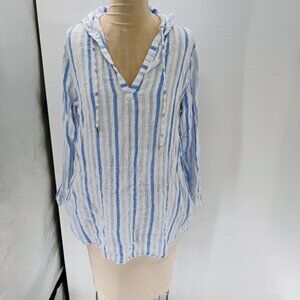 Blue Island Women’s Long Sleeve White Navy Striped Cover Size M