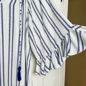 It does have several light smudges on the back of the right sleeve but is really not noticeable once it's on