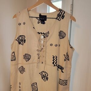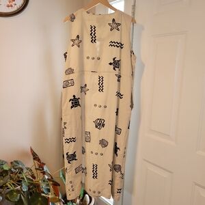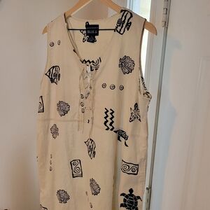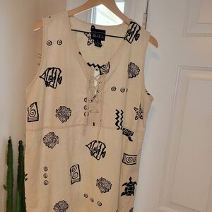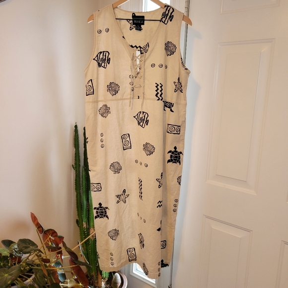 Blue J. Linen Cotton Blend Nautical Fish Themed Sleeveless Summer Dress,Size XL