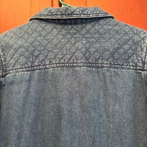 Trendy blue denim dress perfect for casual outings. Features long sleeves for added style.