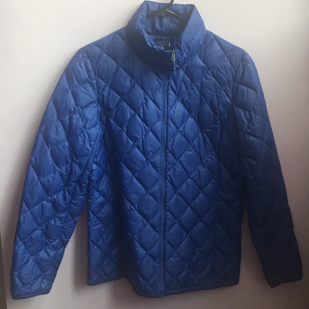 This is a light winter jacket! It is very comfortable, perfect for fall or even winter by adding some extra layers under! It is from Costco. You can’t tell from the tag, but it is a medium, which is my usual size. It looks pretty new to me!