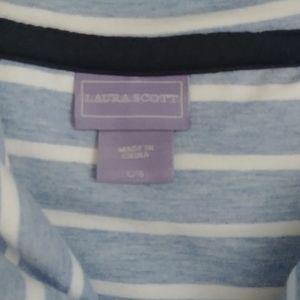 EUC! Light blue and white stripes jacket with adhustable collar and navy lining down zipper and bottom. Soft inside fabric. Smoke free home. Size: Large