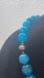 Elegant blue dyed jade necklace measures 18” long with desert pearls.