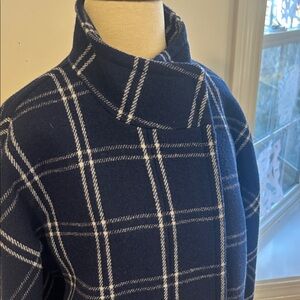 Stylish navy plaid coat with a classic design. Perfect for cool weather. Size 6. Funnel neck with good zipper