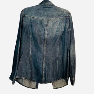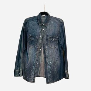This lightweight and fun denim top looks great with a tank, or alone. Measures 19” pit to pit and 27” shoulder to bottom. NWT Slightly titted.