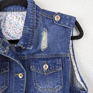 Blue Denim Vest Sleeveless Distressed Botton Front