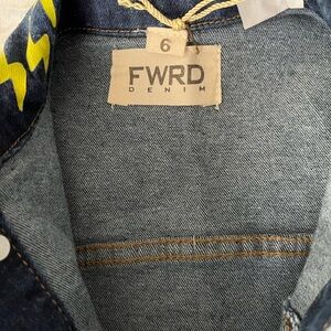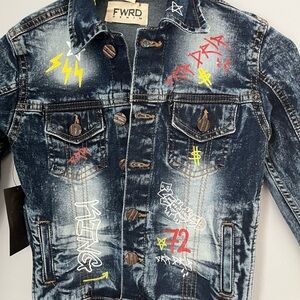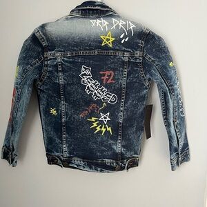 Blue Jean Jacket with Distressed Look and Colorful Embellishments