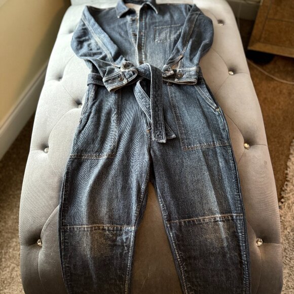 This chic blue jean jumpsuit is a wardrobe staple! Featuring a button-down front and a matching denim tie belt, it’s perfect for a trendy, pulled-together look. relaxed fit design gives a flattering look, making it versatile for day or night wear. Pair it with heels for a dressed-up vibe or sneakers for a casual, stylish look.
