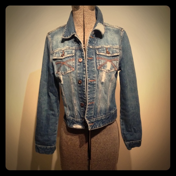 Tattered and patched jacket. Button up. On the heavier side so can be worn for warmth also. Great style that can pull together any outfit.