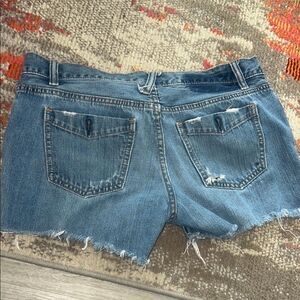 Blue Jean Shorts with Frayed Hem and Two-Tone Design