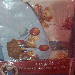 Blue Jean Teddy Baby Nursery 3 Piece Accessory Set Blanket Crib Ruffle Diaper