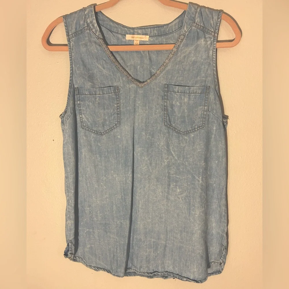“Blue Jean” Tank Top *not real denim. Actually VERY soft fabric! *small touches of pink in stitching *longer in back