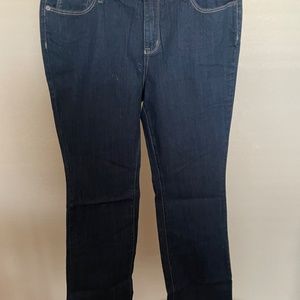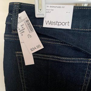 Brand new (with tags) dark blue jeans. Boot Cut. Regular length. Westport brand- Signature Fit. Mid-rise. 74% Cotton, 24% Polyester, 2% Spandex