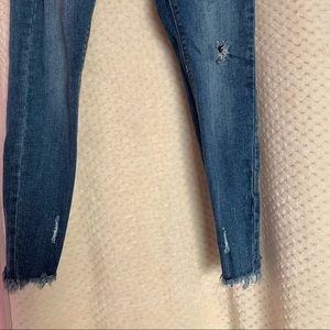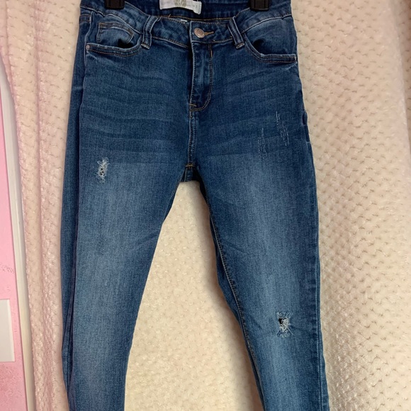Blue small rip jeans . Worn once . The bottoms are very detailed and comfortable.