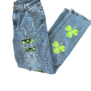 Blue Jeans with Distressed Details and shamrocks! Perfect for St. Paddy’s Day!