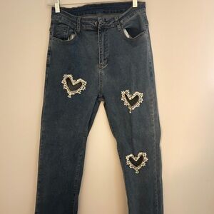 Blue Jeans with Heart Embellishments