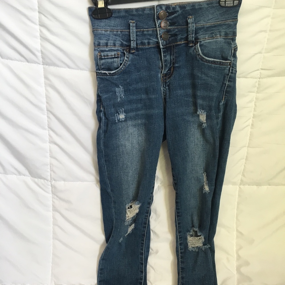 High rise push up blue jeans with rips! These jeans are a perfect fit and go good with any outfit