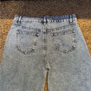 Stylish blue jeans featuring pink small bows. Perfect for casual wear.