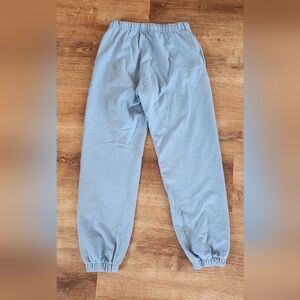 Stylish blue joggers featuring colorful pastel lettering on the leg. Size Small great condition