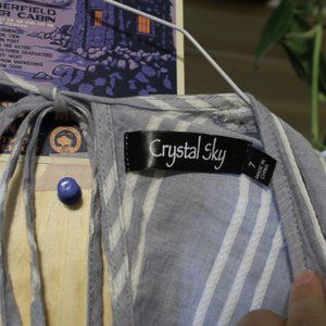 Super cute and lightweight. Perfect for summer date night or a casual wedding. The pleats at the waistline create a cinched look. It closes with a zipper at the waist and ties at the neck.