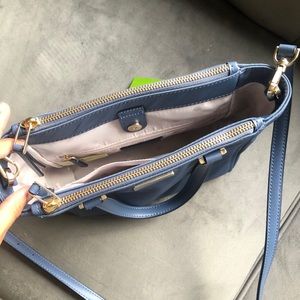 Brand new with tags. The most beautiful blue colored bag. Inside pockets with two zipper compartments on the side. Debating on selling.