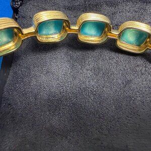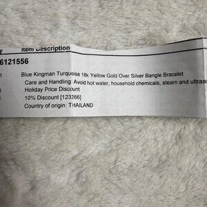 Blue Kingman Turquoise Bangle Bracelet 18k Gold Over Silver JTV Vintage 8" Jewel