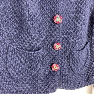 Blue Knit Cardigan Sweater Embroidered Buttons Cotton Wool Blend
