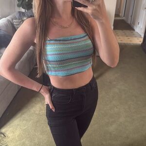 Stylish knit tube top with vibrant colors. Ideal for summer days.