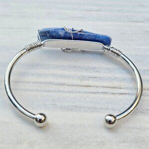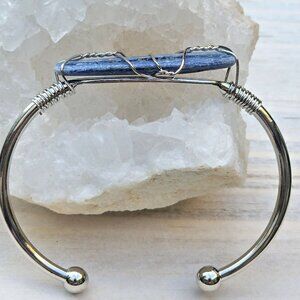 Blue Kyanite Wire Wrap Cuff–925 Silver Over Copper–Alignment & Clarity Talisman
