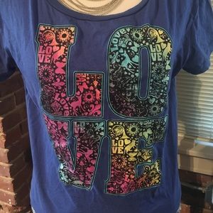 Blue LOVE โค๏ธ T-Shirt with multi-color letters that spell love. Loose fit, very comfortable.