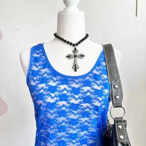 Blue Lace Tank Top, Coquette Soft Girl Balletcore Y2K Romantic Angelcore Large