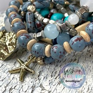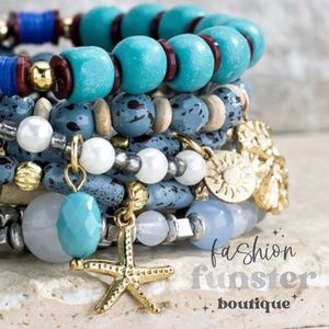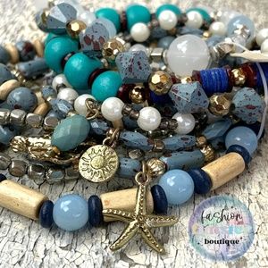 Blue Lagoon Stackable Boho Beach Stacked Bead Arm Party Charm Stack Bracelet Set